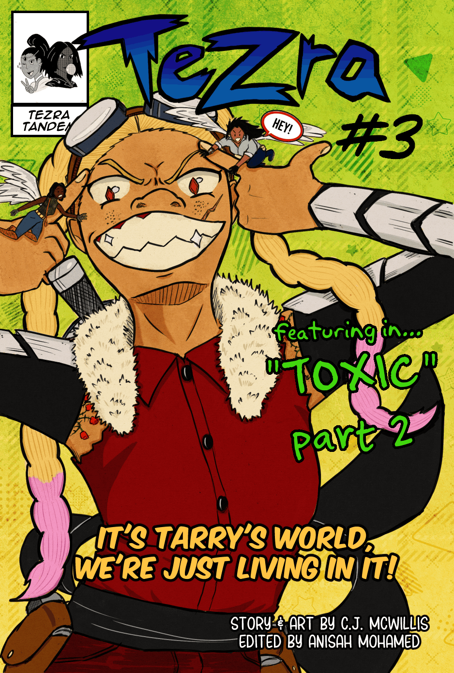 CJM, or Chelsea, (she/her) is a mostly self-taught comic creator who hails from the Bronx. Growing up, she’d always loved action-packed films, cool heroines, and cute animals. As the TezraTandem duo, she is the creator, artist and writer of her award-nominated comic series, TEZRA, with her editing partner, Anisah. Her passion is in creating and exploring multi-faceted Black women in fantastical worlds, being the hero, the villain and everything in between.